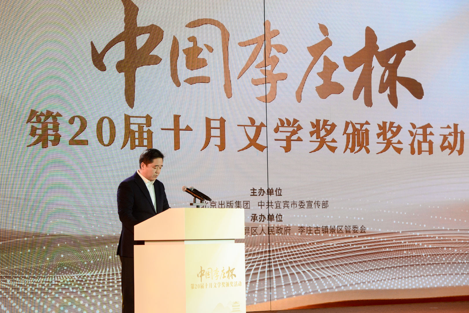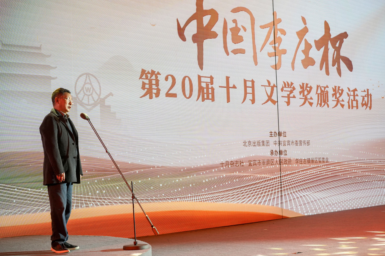 本次頒獎(jiǎng)活動(dòng)由北京出版集團(tuán)、中共宜賓市委宣傳部主辦,《十月》雜志社、宜賓市翠屏區(qū)人民政府、宜賓李莊古鎮(zhèn)景區(qū)管委會(huì)承辦。中國作協(xié)副主席白庚勝,中國作協(xié)副主席、四川省作協(xié)主席阿來,北京出版集團(tuán)總編輯趙彤,宜賓市委常委、宣傳部部長雷濤,翠屏區(qū)委書記石進(jìn),《十月》主編陳東捷等嘉賓出席此次頒獎(jiǎng)儀式,各位獲獎(jiǎng)作家先后發(fā)表獲獎(jiǎng)感言。