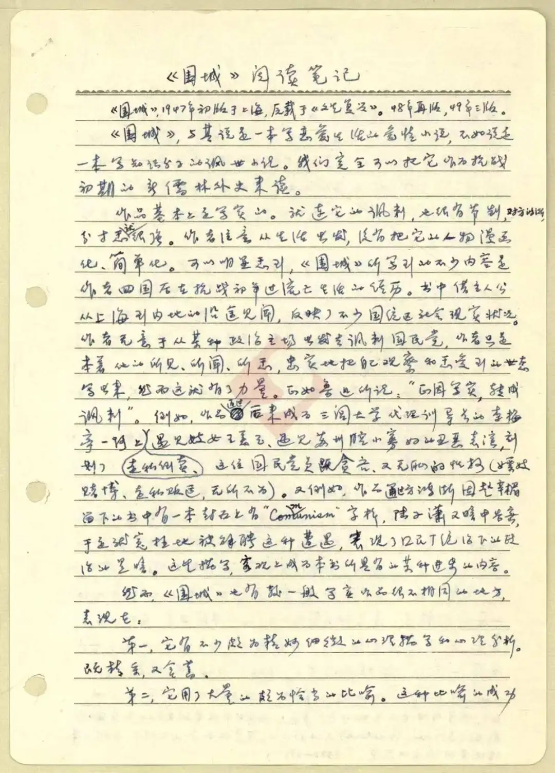 在中國(guó)現(xiàn)代文學(xué)館“嚴(yán)家炎文庫(kù)”,有一份關(guān)于錢鐘書的未刊手稿,包括《關(guān)于錢鐘書小說(shuō)〈貓〉〈圍城〉及其所代表的文學(xué)流派的一些感想》《〈圍城〉閱讀筆記》《錢鐘書生平簡(jiǎn)況》以及陳貽焮對(duì)《圍城》的評(píng)價(jià)。1嚴(yán)家炎在《關(guān)于錢鐘書小說(shuō)〈貓〉〈圍城〉及其所代表的文學(xué)流派的一些感想》里,闡述了把丁西林、老舍、錢鐘書尤其是后兩者作為一個(gè)流派的理由:第一,他們的作品都受英國(guó)文學(xué)的影響;第二,他們的作品都有幽默、機(jī)智的諷刺成分,顯示了一種較特殊的色調(diào);第三,他們對(duì)舊的世態(tài)人情根本態(tài)度都是諷刺而又溫厚的,即魯迅所稱《儒林外史》的“委婉多諷”;第四,他們的作品往往不注重時(shí)代氣氛的刻畫,只是側(cè)面順便勾勒一些;第五,他們的小說(shuō)都比較重視敘述,且夾敘夾議,有助于展現(xiàn)幽默、機(jī)智、生動(dòng)的藝術(shù)特色。他還特別強(qiáng)調(diào):“丁西林、老舍從英國(guó)文學(xué)里接受來(lái)的影響,到錢鐘書手里才發(fā)揮成為特長(zhǎng)?!薄丁磭恰甸喿x筆記》《錢鐘書生平簡(jiǎn)況》記敘了作者閱讀小說(shuō)《圍城》和夏志清《中國(guó)現(xiàn)代小說(shuō)史》的感想和筆記。陳貽焮是嚴(yán)家炎北大中文系同事,中國(guó)古典文學(xué)研究領(lǐng)域的專家,出版過(guò)皇皇巨著《杜甫評(píng)傳》,也寫過(guò)杜甫題材小說(shuō)《曲江踏青》2,被嚴(yán)家炎親切地叫做“大師兄”。嚴(yán)家炎記錄了陳貽焮對(duì)《圍城》的評(píng)價(jià),與夏志清的贊譽(yù)有加不同,陳貽焮認(rèn)為《圍城》藝術(shù)成就并不算高,由于國(guó)外的熱捧,才造成國(guó)內(nèi)的追捧。這段話提供了當(dāng)時(shí)評(píng)價(jià)《圍城》的另一種視角。3