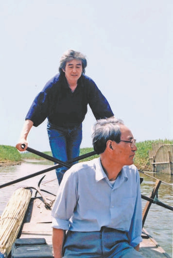 牛漢在白洋淀(1994年,劃船者為詩(shī)人芒克)