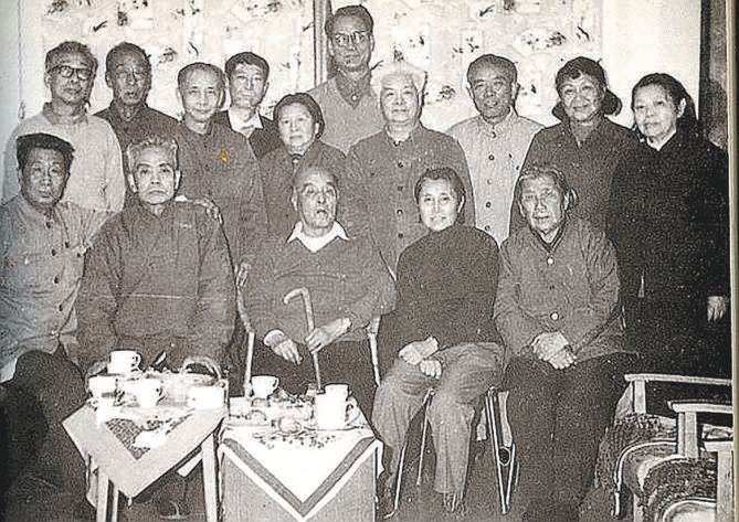 牛漢(后中)和朋友們?yōu)楹L(fēng)(前中)慶賀八十壽辰(1982年,北京)