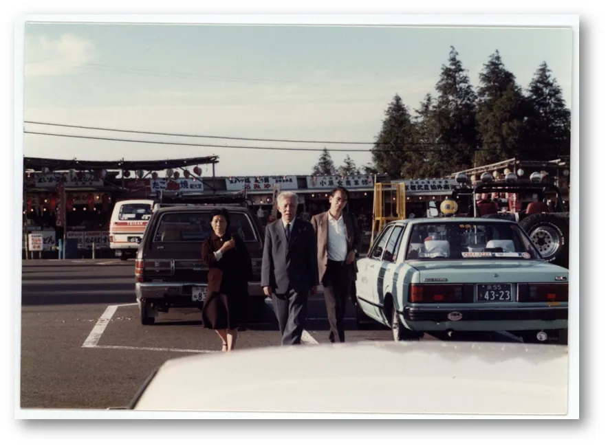 另一份錄音也很特別,它是王瑤1985年去日本時的講座,里面有日語的翻譯。這次和日本有關的,還有一些因為篇幅最終刪去的素材。專檔中的照片里,有相當一部分是1985年這次在日本拍攝的,多是抓拍,而非站定了擺好姿勢的合照。停車場中的一張,王瑤和隨行兩人直面鏡頭,衣角皆在空中,毫無疑問是在行走中拍攝的,有一種電影劇照的氣質(zhì)。