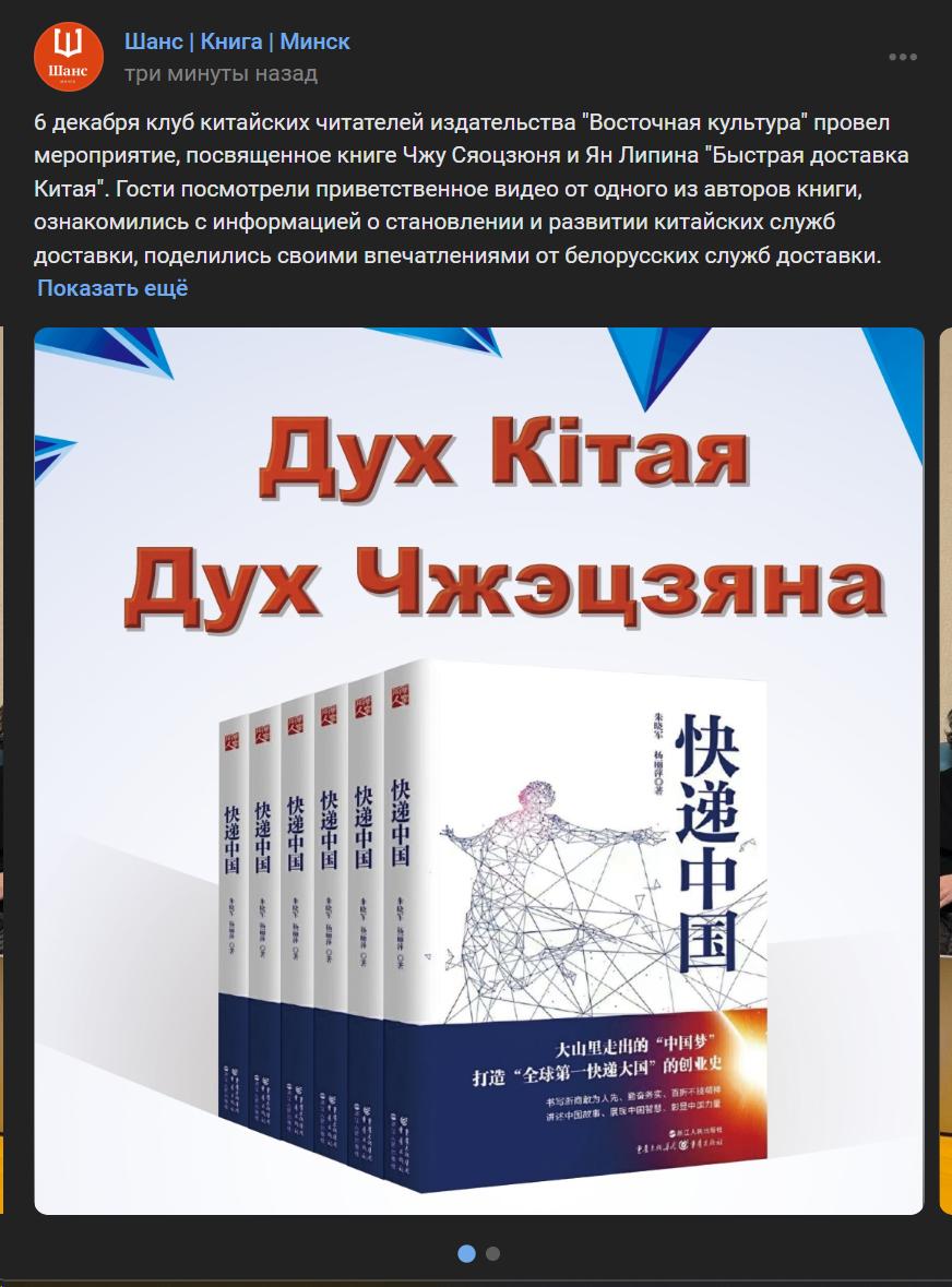 12月6日,由中國(guó)作協(xié)外聯(lián)部指導(dǎo),白俄羅斯中國(guó)文學(xué)讀者俱樂部與白俄羅斯東方文化出版社共同主辦了朱曉軍、楊麗萍作品《快遞中國(guó)》的俄文版分享會(huì)?;顒?dòng)在明斯克尚斯書店舉行,并通過俱樂部新媒體賬號(hào)進(jìn)行傳播,向當(dāng)?shù)匚膶W(xué)愛好者介紹了這部以生動(dòng)故事反映中國(guó)式現(xiàn)代化道路的作品。