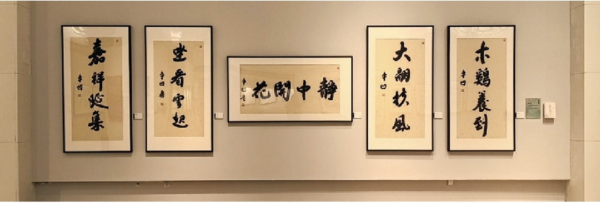 很多作家學(xué)者都寫得一手個性分明的好字?!办o中開花”“坐看云起”等一連五幅行書大字,來自賈平凹,字體稚拙厚重,用筆簡單直率,頗見西北質(zhì)樸、粗獷的氣象。在作品選擇上,他融入自己對于傳統(tǒng)美意的追求,每一幅字都暗含美好生活的祝愿。劉亮程此次展出的作品中,有兩幅大大的“馕”字很是拙樸有趣,并且將同一個字寫出了不一樣的風(fēng)味。馕是新疆特有的吃食,這樣的書法不由提醒人們,書寫者是一位從新疆走來的作家,其代表作《一個人的村莊》講述的正是新疆天山腳下的那些事。以《主角》《裝臺》等小說聞名的陳彥,帶來的一系列書法靈感直接取自其經(jīng)典著作,富于巧思。只見“主角”“裝臺”等大字位居作品C位,環(huán)繞它們的小字,則來自書中相應(yīng)的經(jīng)典橋段,就像文學(xué)作品的藝術(shù)版本。