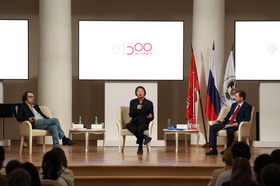 在俄羅斯訪問(wèn)期間,劉震云來(lái)到具有300多年歷史的圣彼得堡國(guó)立大學(xué),接受了由校長(zhǎng)克羅帕切夫授予的圣彼得堡國(guó)立大學(xué)名譽(yù)博士學(xué)位,并參加了由圣彼得堡大學(xué)和俄羅斯中國(guó)文學(xué)讀者俱樂(lè)部共同舉辦的“俄羅斯與中國(guó):文學(xué)創(chuàng)造中未來(lái)的形象”文學(xué)研討會(huì)。研討會(huì)由羅季奧諾夫主持,由劉震云和俄羅斯作家阿斯特瓦察圖羅夫?qū)φ劊耸ケ说帽ぶ袊?guó)文學(xué)讀者300余人參加。