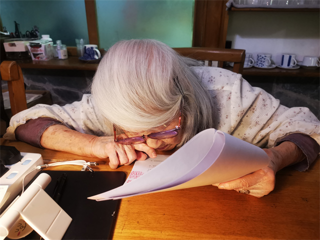 灰娃寫詩(shī)的時(shí)候很是投入,一旦進(jìn)入寫作狀態(tài),完全是一種常人難以想象的樣子——原有的一切生活秩序統(tǒng)統(tǒng)打亂,臉顧不上洗,頭發(fā)不梳理,穿衣也不再講究,說(shuō)話也常常不在狀態(tài),完全就是淪陷于詩(shī)境的樣子。她的詩(shī)集有很多作品是我?guī)椭蛴〉模蹇偸菍懥烁?,改了寫,有的地方改得像天書一般,交給孫女或者我打印后,變動(dòng)依然很大。我感覺(jué)她修改的過(guò)程,更多的是想準(zhǔn)確表達(dá)她的思想和觀點(diǎn),語(yǔ)言的修改并不在追求語(yǔ)言本身而在于表述思想和觀點(diǎn)。從她最初思考,到開(kāi)始創(chuàng)作,再到修改調(diào)整,一條思考和寫作的脈絡(luò)一點(diǎn)點(diǎn)從混沌走向澄明,直到定型定稿。這種嚴(yán)肅認(rèn)真,像朝圣一樣對(duì)待詩(shī)歌的態(tài)度著實(shí)讓人敬畏。