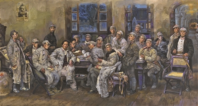 有別于以原色為主的歐洲古典油畫,沈堯伊的《遵義會議》特意減弱畫面色彩飽和度來還原會議樸素、真實的場景,既忠實于歷史,又烘托出深沉凝重的氣氛。這件作品不僅填補了革命歷史題材美術(shù)創(chuàng)作的空白,更為黨史研究貢獻了珍貴圖像資料,也為其他同題材美術(shù)創(chuàng)作提供了重要參照和啟示——既要深入探尋與研究歷史真相,也要不斷完善和探索主題的最佳表現(xiàn)方式。創(chuàng)作者要將自己置身于歷史情境之中,用心體悟每一個人物的造型與精神面貌,以超凡的藝術(shù)感受力與通感力再現(xiàn)中國革命歷史。
