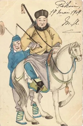 清二次片,周培春繪《頭品文官》,郵路:1907年2月28日經(jīng)北京的德國客郵局收寄,于同年的4月14日到達(dá)荷蘭的阿姆斯特丹