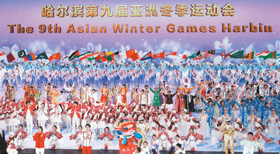 二月七日,第九屆亞洲冬季運(yùn)動會開幕式在黑龍江省哈爾濱市舉行。圖為演員在開幕式上表演。新華社記者 楊 磊攝