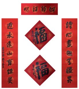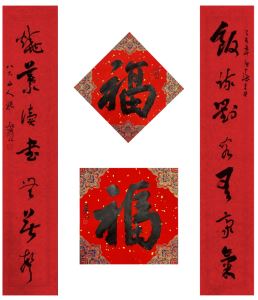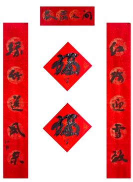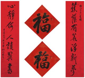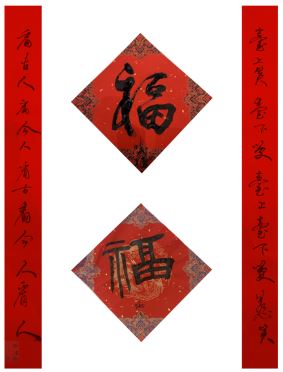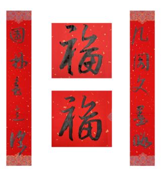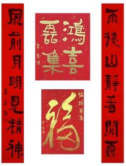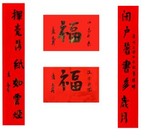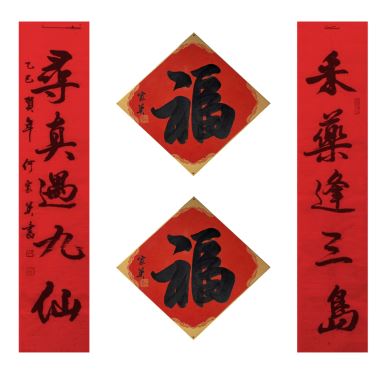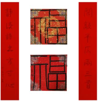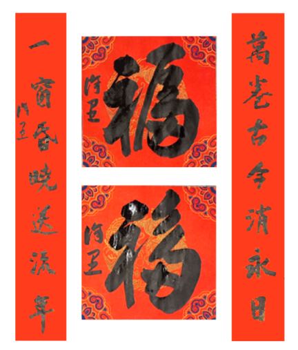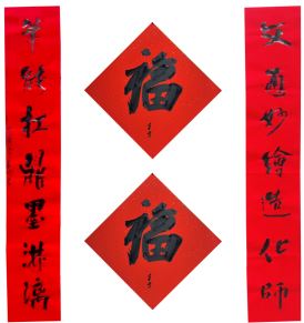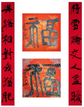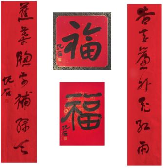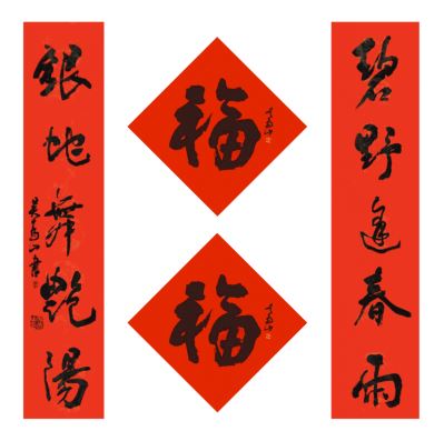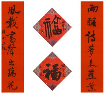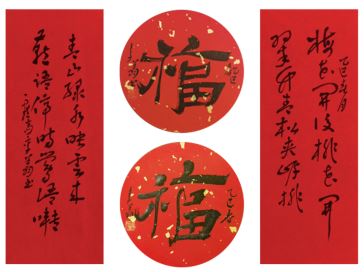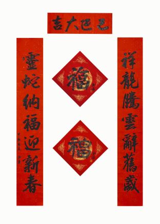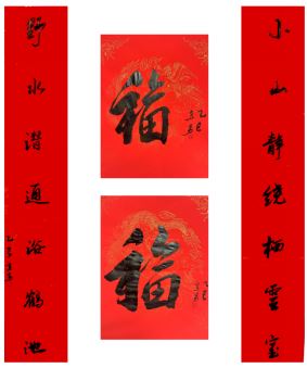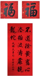 中國美術(shù)家協(xié)會名譽(yù)主席、中央文史研究館副館長馮遠(yuǎn)書對聯(lián):“祥龍騰云辭舊歲,靈蛇納福迎新春?!?/p>