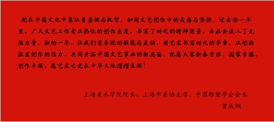 蛇在中國文化中象征著柔韌與機(jī)智,如同文藝創(chuàng)作中的靈感與堅持。過去的一年里,廣大文藝工作者以熱忱的創(chuàng)作態(tài)度,書寫了時代的精神圖景,為社會注入了無限力量。新的一年,讓我們秉承蛇的敏銳與靈動,用藝術(shù)書寫時代的華章,以創(chuàng)新激發(fā)創(chuàng)作的活力,共同開拓中國文藝事業(yè)的新局面。祝愿大家新春吉祥,闔家幸福,創(chuàng)作豐碩,愿藝術(shù)之光在中華大地熠熠生輝!