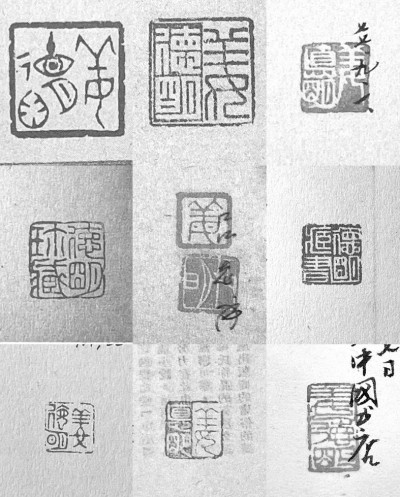 筆者收集姜德明鈐蓋于不同時(shí)期圖書(shū)上的印章,目前確認(rèn)的共有九枚,分別是:1.姜德明(大篆寬邊朱文),2.德明珍藏(朱文),3.姜德明(朱文),4.姜德明(朱白相間),5.姜(大篆朱文)、德明(大篆白文),6.姜德明(朱白相間),7.姜德明(白文),8.德明藏書(shū)(白文),9.姜德明(豎式,朱文)。印章整體質(zhì)量較好,以入印文字來(lái)看,從甲骨文、金文到小篆都有,且都是小印,像第—、第二、第五、第七枚稱得上精美。姜德明長(zhǎng)期在《人民日?qǐng)?bào)》副刊部執(zhí)編“大地”副刊,有機(jī)會(huì)接觸到國(guó)內(nèi)第一流文藝家,其中不少就以多藝多才著稱,還精于篆刻,如錢(qián)君匋、李白風(fēng)、曹辛之等。姜德明的藏書(shū)章中,可能就有出自于他們之手的印章。另外,筆者還注意到姜德明在使用這些姓名章時(shí),鈐蓋位置、印章大小、印泥大體還講究。不過(guò),筆者也發(fā)現(xiàn)有些印章可能出于后人的追加,如鈐蓋在書(shū)尾的姓名章,與鈐蓋于書(shū)扉頁(yè)的印章重復(fù),前人只有在書(shū)末寫(xiě)題跋時(shí)才加蓋印章。而扉頁(yè)目錄頁(yè)或正文的反復(fù)鈐印也顯得疊床架屋。鈐印既是藏書(shū)家曾經(jīng)收藏的紀(jì)錄,也接續(xù)了藏書(shū)文化中的優(yōu)秀傳統(tǒng),朱砂紅印鈐蓋在經(jīng)過(guò)時(shí)間風(fēng)化略略泛黃的紙上,增飾了書(shū)籍被”讀過(guò)”的美感,也顯示了藏書(shū)家的珍惜之心。