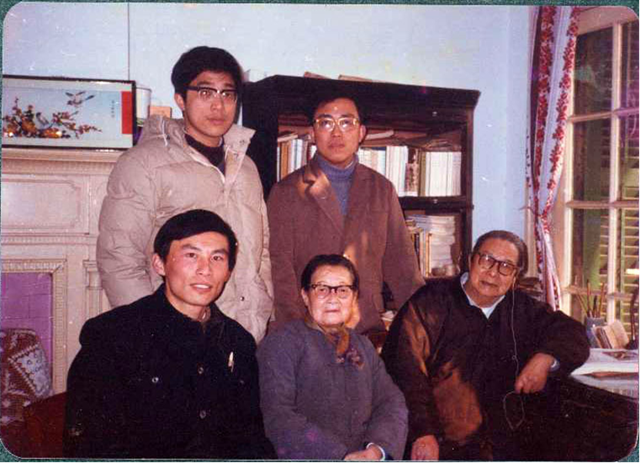 施蟄存與陳慧華同研究生王興康(后排右一)、張文江(后排左一)、宮曉衛(wèi)(前排左一)合影