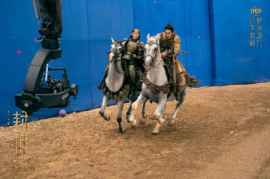 鄧嬋玉飾演者爾那茜與姬發(fā)飾演者于適在拍攝中