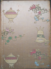 這本《獵人日記》錦面本,來自老作家徐開壘先生的舊藏,徐、黃二人是相交幾十年的報(bào)社同事。錦面本值得玩味的地方,是封面上沒有印刷書名,僅在書脊上印制了紅色凹字書名,作者、出版社等信息一概略去,上面所繡的鼎、爵、云紋、佛手、石榴等五彩圖案反向排列,看上去雍容華貴、光彩靚麗。