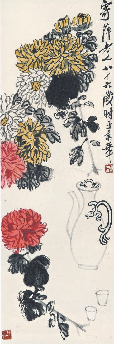 四月廿四日,幾位朋友聚談至倦,有朋友勸酒,白石點(diǎn)到即止,絕不多飲,在座的摯友李筠庵出面解釋,說白石是“生平自醒,非他人至死沉醉者”。白石把朋友的良言錄入日記,當(dāng)然體現(xiàn)的是他的尊重與自覺。齊白石畫過數(shù)不清的《醉酒圖》《盜甕圖》《菊酒圖》,但他是不是沒有過一次喝得爛醉呢?他自己的日記不少,別人回憶他的文章更多,可以說沒有一次是記白石醉酒的。
