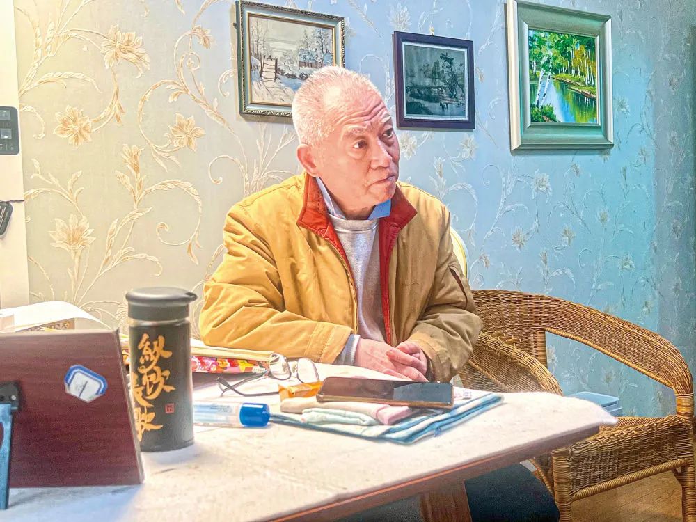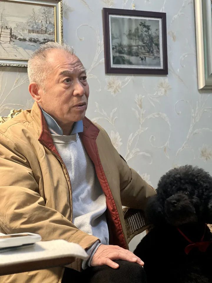 梁曉聲在家中接受記者專訪,小狗“皮皮”在一旁安靜聆聽。