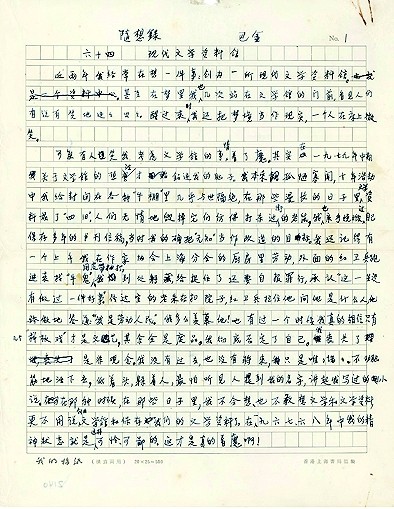 巴金《隨想錄》手稿,文中提及“創(chuàng)辦一所現(xiàn)代文學(xué)資料館”的心愿。現(xiàn)藏于中國現(xiàn)代文學(xué)館。中國現(xiàn)代文學(xué)館提供