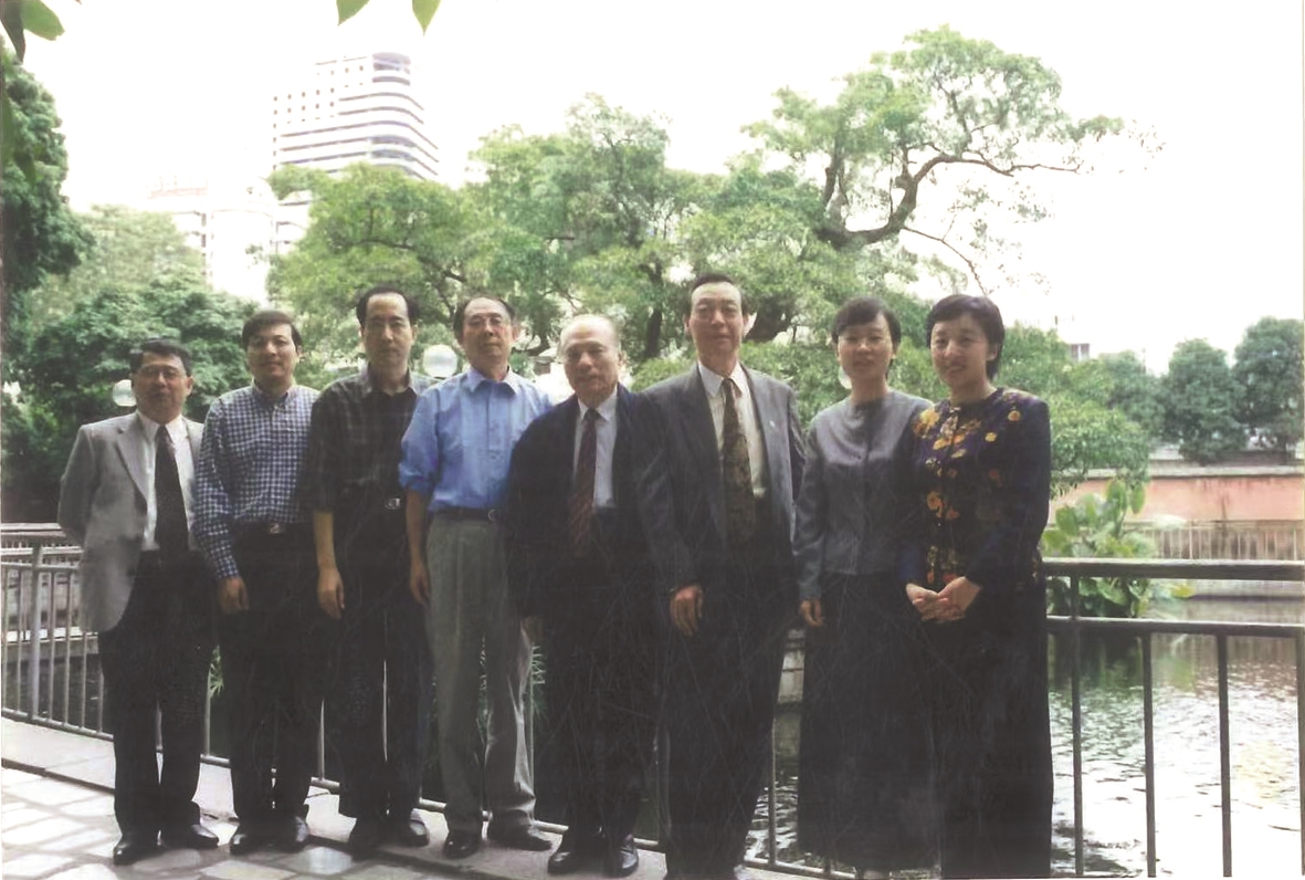張?jiān)妱Γㄗ罅?、曾敏之(左五)與作者(左三)20世紀(jì)90年代在福州