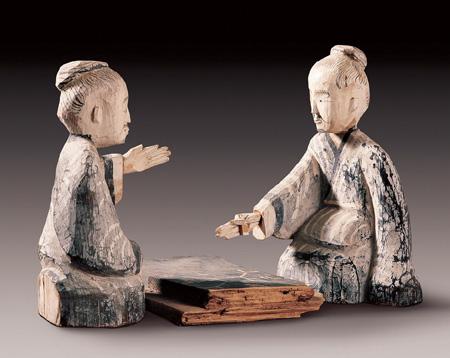 彩繪木六博俑 漢代