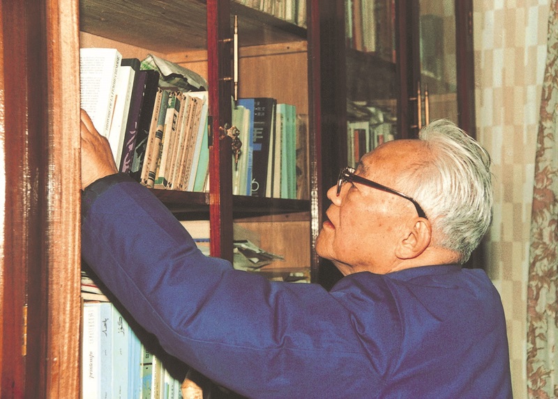 巴金在家中整理要捐贈(zèng)給中國(guó)現(xiàn)代文學(xué)館的圖書