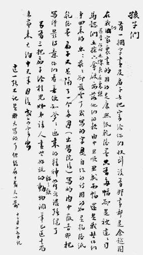 在這四百余封信中,梁啟超寫給長女梁思順的信最多。究其原因,一是因為她在梁啟超膝前的時間最久,從小梁啟超就教她讀書,兩人的心性最為相近;二是因為她與做外交官的丈夫周希哲常駐加拿大,距離在美國、加拿大留學(xué)的弟弟妹妹最近,加之母親久居北京、病重早逝,她順理成章有了“長姐如母”的責(zé)任與擔(dān)當(dāng)。梁啟超不但將幾個子女的學(xué)費、生活費一并匯給她,由她量情分發(fā),還將給其他子女的書信統(tǒng)寫于她,這使得她能準(zhǔn)確領(lǐng)會父親的心意,并且助益于自身的成長。最感人的是,梁啟超在寫給她的最后一封信中說:“我平常想你還自可,每到病發(fā)時便特別想得厲害,覺得象是若順兒在旁邊,我向她撒一撒嬌,苦痛便減少許多?!贝肿x,或許以為這不太像父親跟女兒說的話;細(xì)想,卻是切膚之言。為人——無論父輩、子輩——誰不希求愛和哄?人老了,往往重生童心,渴望有人去愛、去哄,何況他已預(yù)感到大限將至,再難相見,怎能不吐出心底的話?這才是真性情的流露。