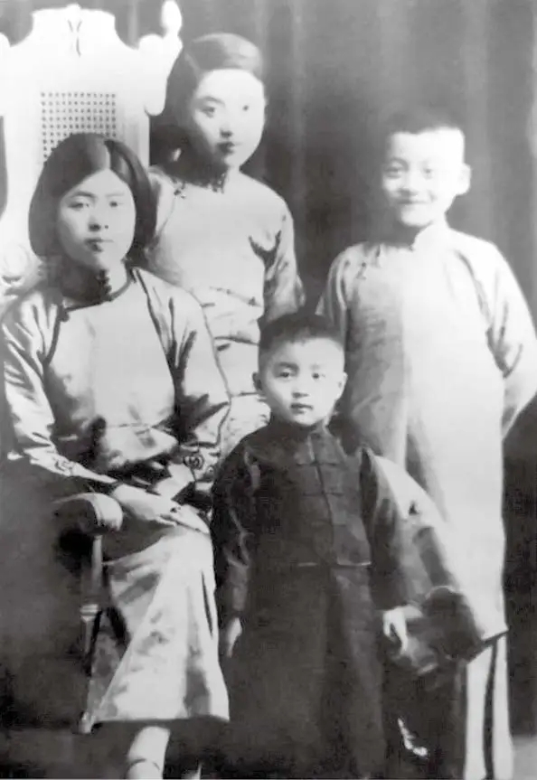 鄧稼先姐弟四人合影。右起:鄧稼先(10 歲)、鄧槜先(4 歲)、鄧茂先(18 歲)、鄧仲先(20 歲)