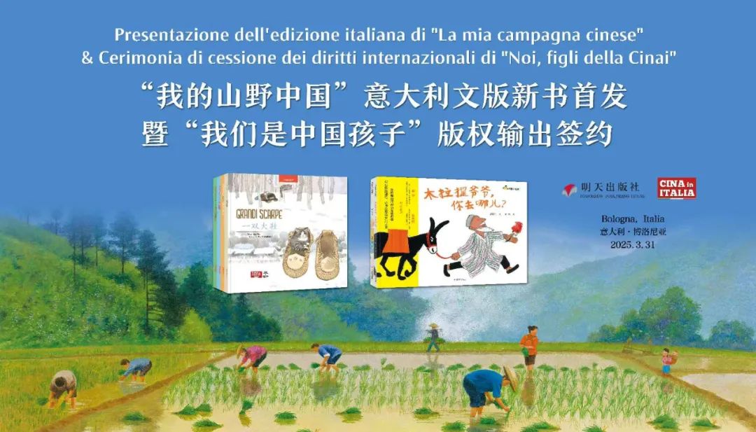 當(dāng)?shù)貢r(shí)間3月31日,在全球最具影響力的國(guó)際性書(shū)展之一——意大利博洛尼亞國(guó)際童書(shū)展首日,“我的山野中國(guó)”意大利文版新書(shū)首發(fā)暨“我們是中國(guó)孩子”版權(quán)輸出簽約儀式隆重舉行。本次活動(dòng)由明天出版社、意大利中國(guó)文學(xué)讀者俱樂(lè)部、世界中國(guó)出版社聯(lián)合主辦,來(lái)自中意兩國(guó)的出版界、文化界嘉賓齊聚一堂,共同見(jiàn)證中國(guó)原創(chuàng)圖畫(huà)書(shū)的國(guó)際魅力。