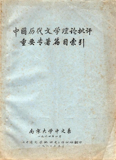 師訓(xùn)班還印發(fā)了南京大學(xué)中文系所編《中國歷代文學(xué)理論批評(píng)重要專著篇目索引》作為教材