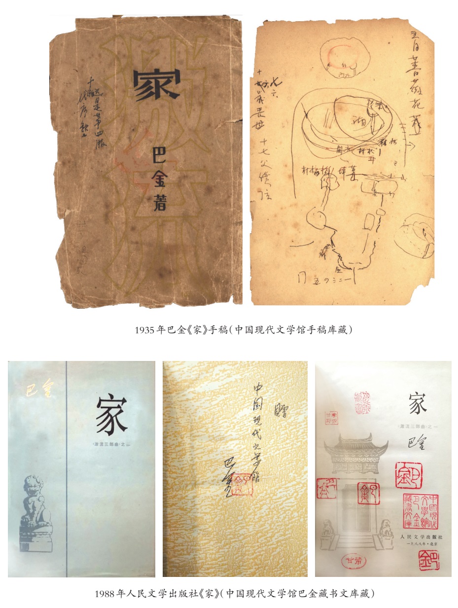 似乎是《家》的原稿的丟失激發(fā)了巴金的留檔存檔意識,關(guān)于作品的修訂稿本他都有意識地留存?zhèn)洳?,后來他把這些留有大量手寫筆跡的圖書版本捐贈給了由他倡議并推動建立的中國現(xiàn)代文學館。中國現(xiàn)代文學館將其作為館藏珍品存放在“手稿庫”,作為珍貴的歷史檔案、文學史料進行保藏,包括巴金的大量手稿與藏書,可謂是精品中的精品。經(jīng)過整理發(fā)現(xiàn),符合手稿標準的《家》還有一部。