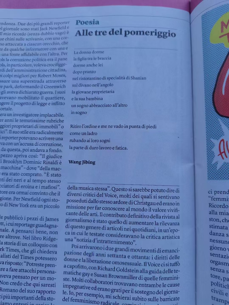 王計兵詩歌《下午三點》刊登在意大利雜志《Internazionale》上