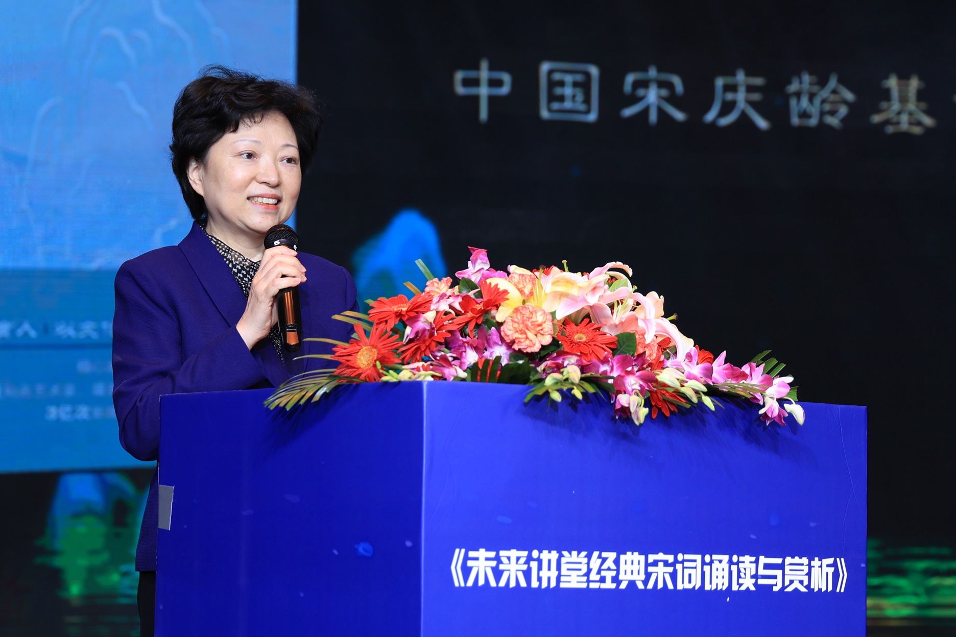 沈蓓莉在致辭中指出,宋詞作為中國文學(xué)的璀璨瑰寶,傳遞出深厚的文化底蘊(yùn)與真摯的家國情懷?!段磥碇v堂——經(jīng)典宋詞誦讀與賞析》精選宋詞名篇,以當(dāng)代視角解讀經(jīng)典,用青春語言對話古人,為青少年更好了解宋詞搭建了一座橋梁。她表示,中國宋慶齡基金會致力于服務(wù)青少年全面發(fā)展。在“全民閱讀活動周”之際舉辦本次活動,是踐行落實(shí)習(xí)近平文化思想的重要舉措,也是響應(yīng)全民閱讀倡議的具體實(shí)踐,希望以此推動青少年養(yǎng)成閱讀習(xí)慣,增強(qiáng)閱讀能力,提升閱讀質(zhì)量,為形成全社會愛讀書、讀好書、善讀書的濃厚氛圍貢獻(xiàn)一份力量。