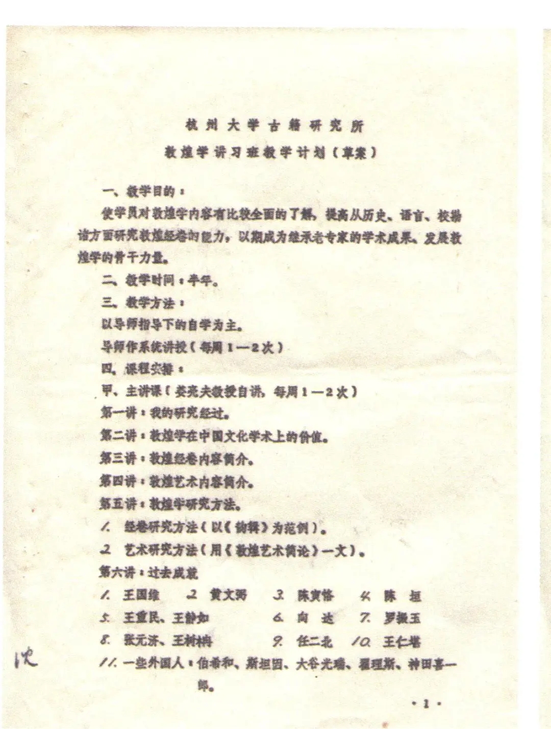 “以一年為宜”的第二期講習(xí)班計劃未能落實后,杭州大學(xué)古籍所還計劃于1984年11月舉辦一個月的敦煌學(xué)講習(xí)班。擬招收“高校或研究機(jī)構(gòu)有志于敦煌學(xué)研究的中青年專業(yè)人員”。仍然由姜亮夫先生主講,擬講座的課程有“敦煌經(jīng)卷綜述”、“敦煌經(jīng)卷研究”、“敦煌遺書的語言研究和??薄薄ⅰ皣鴥?nèi)外研究成果評述”等。但由于形勢的變化,仍然未能舉辦。