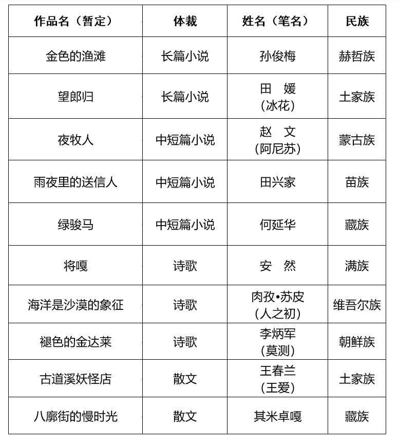 中國作協(xié)2025年度“鑄牢中華民族共同體意識·中國少數(shù)民族文學之星叢書”項目經(jīng)過專家論證和中國作家協(xié)會書記處審批,已確定入選作品10部,擬由作家出版社出版。