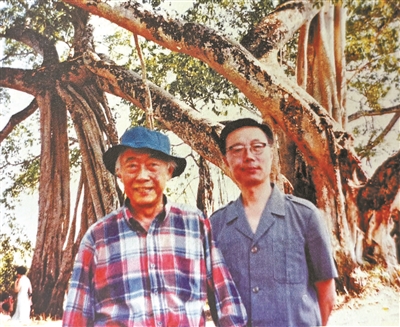 1991年春,張守仁老師與汪曾祺先生旅游云南期間,兩人合影于一木成林的大青樹(shù)下