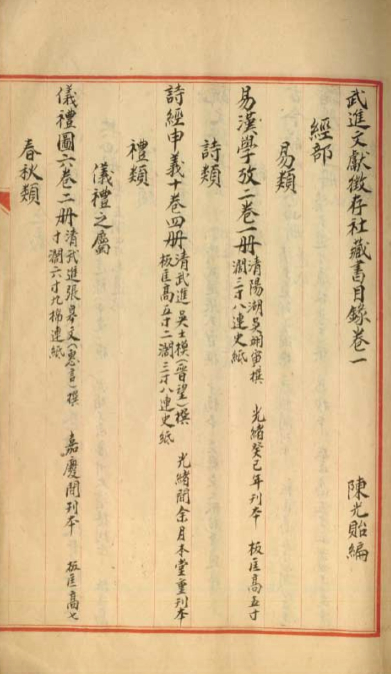 陳光貽編《武進(jìn)文獻(xiàn)征存社藏書(shū)目錄》