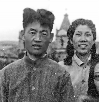 牧虹和妻子仲偉在延安魯迅藝術(shù)學(xué)院的照片。