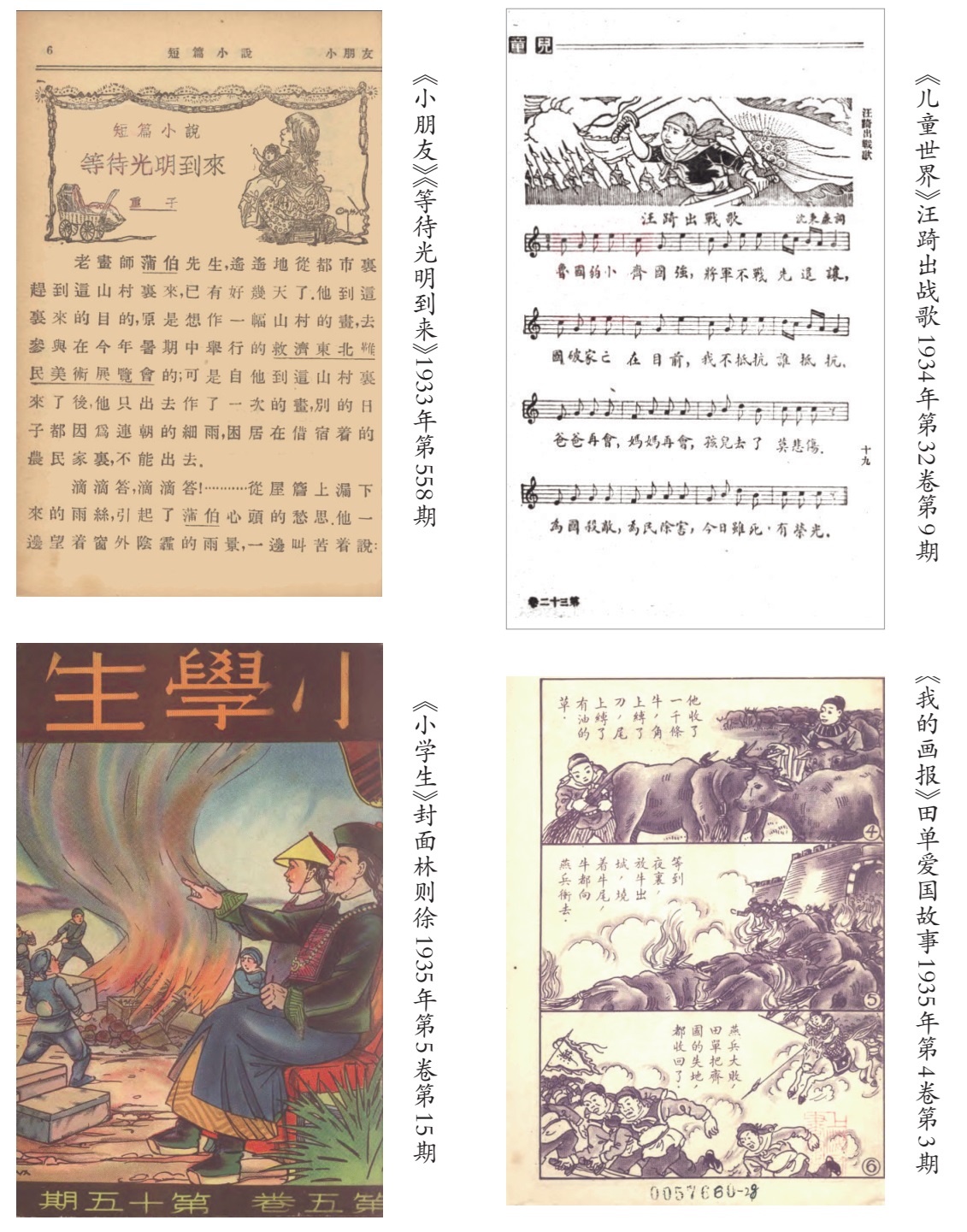 從“歷史中的民族英雄”到“文學(xué)中的抗敵小將”再到“現(xiàn)實(shí)中的抗戰(zhàn)英烈”,兒童報(bào)刊上出現(xiàn)的這三種英雄形象在虛實(shí)與古今之間,共同打通了民族主義從歷史到現(xiàn)實(shí)的通路,歷史上的民族英雄精神最終在抗戰(zhàn)時(shí)期得到了續(xù)接和重振。當(dāng)日本侵華改變了中國(guó)兒童的生存境遇,也同時(shí)改變了知識(shí)分子對(duì)兒童的定位和教育,兒童被看作是“全民族生命的幼苗”,“國(guó)家之盛衰視乎民族,民族之強(qiáng)弱視乎兒童”。中國(guó)的精英知識(shí)分子開始借助媒介力量,以兒童報(bào)刊為陣地,以兒童喜愛的英雄形象為手段,向兒童進(jìn)行抗戰(zhàn)啟蒙和教育。其對(duì)于抗敵英雄的選擇,故事的講述方式和角度,以及在人物形象中所植入的情感、觀念,都反映了教育者對(duì)兒童的期待和塑造,讀者在閱讀報(bào)刊的同時(shí),必然也受到這些英雄形象的感召與鼓舞,兒童的抗戰(zhàn)動(dòng)員因此得以完成。