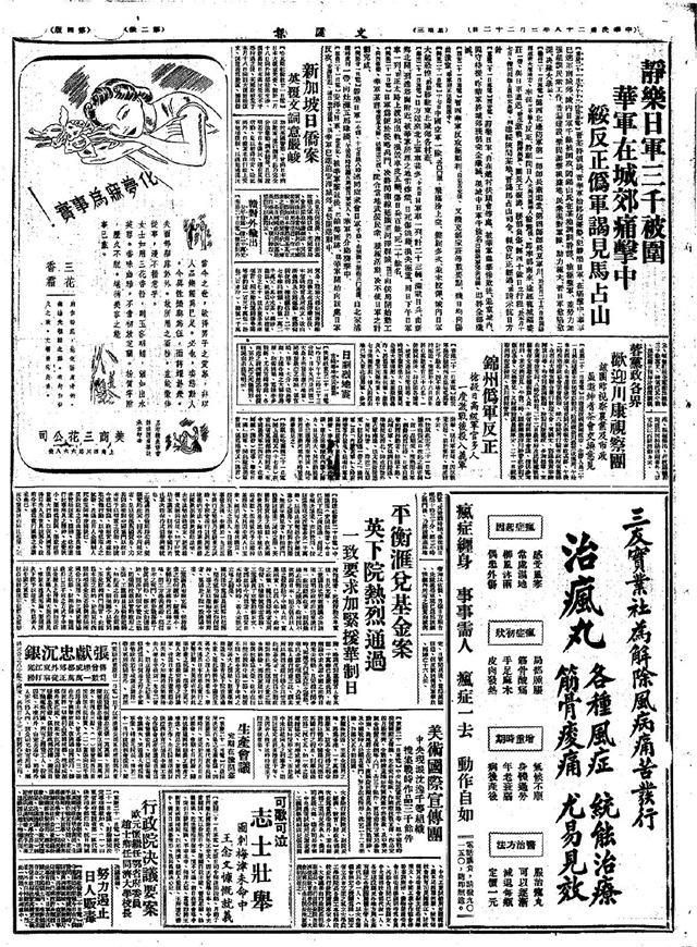 中央現(xiàn)派畫家沈逸千,組中國(guó)戰(zhàn)時(shí)美術(shù)國(guó)際宣傳團(tuán),先赴美再赴歐,作國(guó)際抗戰(zhàn)宣傳,作品定四月底集齊,分戰(zhàn)時(shí)繪畫攝影壁畫漫畫中華景象,及中華民族各聯(lián)系宣傳網(wǎng)等八門,共三千余件,表?yè)P(yáng)前后方軍民參戰(zhàn)動(dòng)態(tài)、戰(zhàn)地將士生活、漢滿蒙回藏苗夷全民擁護(hù)抗戰(zhàn)精神,及中國(guó)戰(zhàn)時(shí)人民艱苦奮斗、努力生產(chǎn)情形。沈定二十二日來(lái)渝,該團(tuán)定五月初出國(guó)。