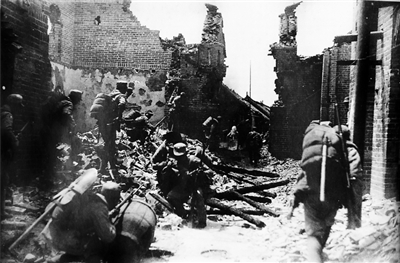 1938年初,為阻止日軍進(jìn)攻,中國(guó)軍隊(duì)先后調(diào)集兵力與日軍展開(kāi)徐州會(huì)戰(zhàn),并于4月上旬取得臺(tái)兒莊大捷。圖為中國(guó)軍隊(duì)與日軍在臺(tái)兒莊巷戰(zhàn)。