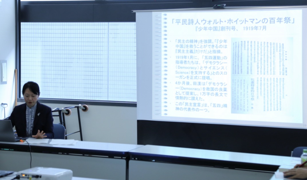活動在文京區(qū)會議中心舉行,由田偉和閻瑜分別向日本讀者講述了中國著名劇作家、詩人田漢先生的旅日故事。1916年8月,18歲的田漢赴日本東京求學。在這里,他加入了李大釗組織的少年中國學會,開展詩歌和戲劇的創(chuàng)作、翻譯和評論,又與郭沫若等共同組織創(chuàng)造社,推動新文學的發(fā)展。田偉從自身經(jīng)歷出發(fā),講述了家族的歷史、田漢先生的生平事跡及其在中日文化交流中的重要地位。她提到,田漢先生在日本東京居住的7年,留下了諸多作品,對中日文化交流起到了深遠影響。她給讀者們分享了許多珍貴的家族照片以及父輩與田漢的通信,講述田漢早年留學、家庭背景、文學戲劇生涯的故事,展現(xiàn)出家族在歷史洪流中的真實與堅韌。