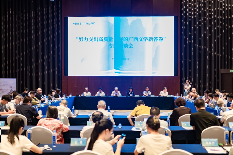 在“努力交出高質(zhì)量發(fā)展的廣西文學(xué)新答卷”專題座談會(huì)上,受邀作家與廣西本地作家代表齊聚一堂,共同探討新大眾文藝視野下廣西文學(xué)發(fā)展的未來(lái)。座談會(huì)由廣西作協(xié)黨組書(shū)記、副主席程小華主持。