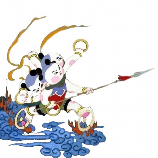 自上世紀(jì)60年代到新世紀(jì)之交,有三部與哪吒密切相關(guān)、影響較大的動畫作品。1961年的彩色動畫片《大鬧天宮》是上海美術(shù)電影制片廠的開山之作,也是哪吒首次被搬上銀幕的作品。影片中,哪吒以“圓潤白胖、三頭六臂”的造型登場,身著紅肚兜、腳踩風(fēng)火輪,雖為配角,卻以驕橫之姿與孫悟空展開激戰(zhàn)。其形象融合年畫嬰戲圖與戲曲形式,為后續(xù)的哪吒形象塑造奠定了視覺基礎(chǔ)。1979年的《哪吒鬧?!肥侵袊鴦赢嬍飞系睦锍瘫?,它以工筆重彩重構(gòu)“剔骨還父”的悲劇敘事。導(dǎo)演王樹忱從敦煌壁畫與民間版畫中汲取靈感,賦予哪吒白衣紅綾、冷峻英氣的少年形象。哪吒自刎一幕的悲壯將反抗精神推向極致,被譽作“國漫史上最悲愴的鏡頭”,其藝術(shù)高度至今仍是東方美學(xué)的標(biāo)桿。2003年,《哪吒傳奇》52集動畫連續(xù)劇以“兒童英雄”為定位,將哪吒塑造成天真勇敢的“小英雄”。作品融入小豬熊、小龍女等原創(chuàng)角色,弱化原著的血腥沖突,強調(diào)友情與成長,作品偏向低齡化的敘事風(fēng)格雖然受到了一些批評,卻成功將哪吒形象嵌入“90后”的童年想象。