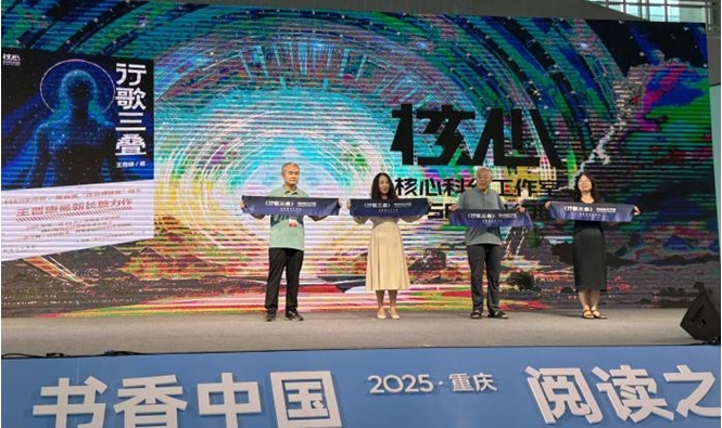 ? 7月25日,科幻作家王晉康全新長篇科幻小說《行歌三疊》新書首發(fā)暨核心科幻工作室成立儀式于正在重慶舉辦的第33屆全國圖書交易博覽會上舉行。首發(fā)式上,文化藝術(shù)出版社負(fù)責(zé)人斯日古楞、副總編輯程曉紅、副經(jīng)理田守強(qiáng),科幻作家王晉康、墨弦,以及上百名讀者與會。
