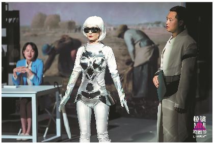 這種敘事性肢體表演給人以特別的驚艷感。以肢體表演完成敘事和抒情,這是一種純屬于戲劇的藝術(shù)手段。由活生生的演員完成的這種帶有抽象色彩的表現(xiàn),也是AI題材電影所難以營造的舞臺詩意。