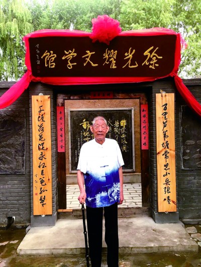 徐光耀在徐光耀文學(xué)館前留影 資料圖片