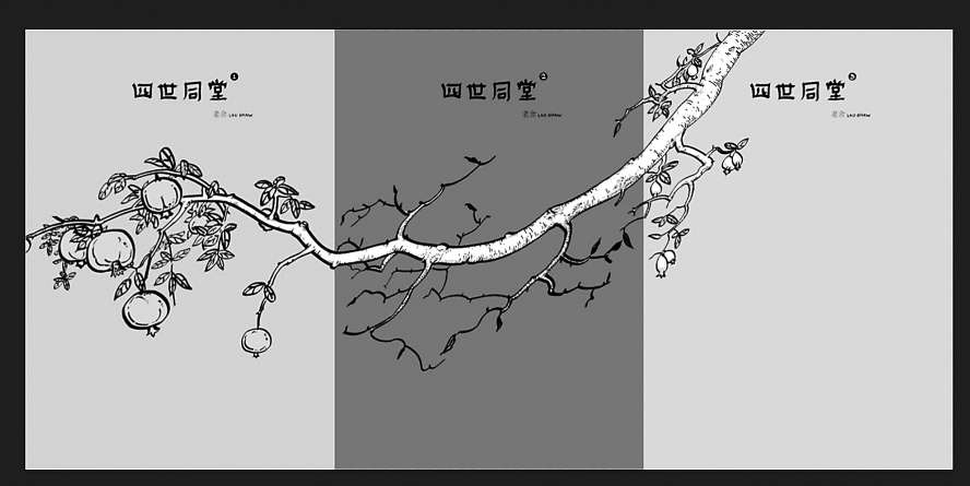 近日出版的“新風(fēng)尚藝術(shù)插畫系列”之《四世同堂》由當(dāng)代藝術(shù)家吳伯文全新詮釋、獨(dú)具北平風(fēng)韻的《四世同堂》,用今天的顏色畫舊時的經(jīng)典,全新插圖再現(xiàn)浮世眾生相。整體封面以一樹石榴貫穿故事,3個分冊都有自己獨(dú)立的色彩:一枝石榴跨越3個季節(jié),暗喻著大時代的動蕩與變遷;《惶惑》是秋日石榴滿綴的豐潤的黃色調(diào);《偷生》是冬日石榴枝葉凋零蕭瑟的藍(lán)灰色調(diào);《饑荒》則是春日石榴枝上待放的新芽萌動希冀的粉色調(diào)。