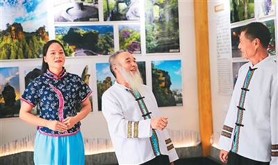 馬渡民歌傳承人雷澤勝(中)等人在演唱《蘇二姐》。
