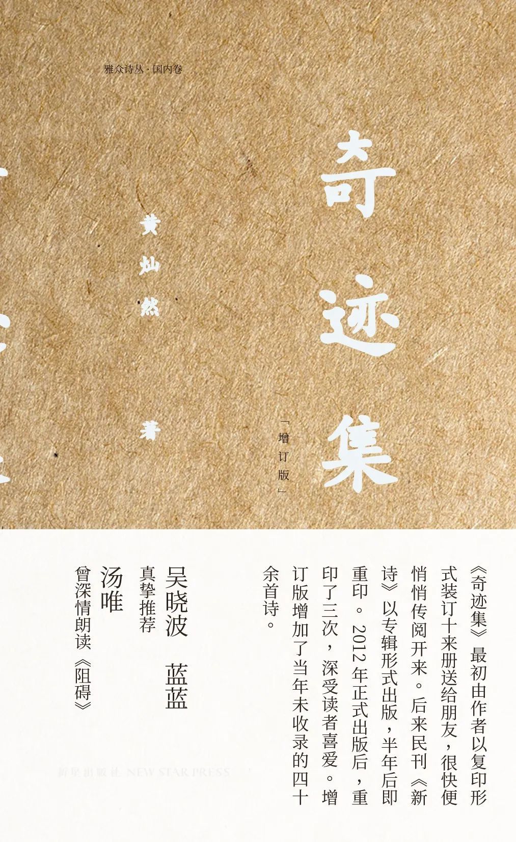 黃燦然,詩人、翻譯家、評論家,生于1963年,福建泉州人。1978年移居香港,1988年畢業(yè)于暨南大學(xué)新聞系,1990—2014年任職于香港《大公報(bào)》,從事國際新聞翻譯。著有詩集《奇跡集》、《黃燦然的詩》和兩卷本《詩合集》(繁體字版)等。譯有《卡瓦菲斯詩集》、《巴列霍詩選》、蘇珊·桑塔格《論攝影》、布羅茨基《小于一》等;近期譯著有《曼德爾施塔姆詩選》、《一只狼在放哨:阿巴斯詩集》、《希尼三十年文選》、希尼《開墾地:詩選1966—1996》、《致后代:布萊希特詩選》、《站在人這邊:米沃什五十年文選》、《火:魯米抒情詩》、《死亡賦格:保羅·策蘭詩精選》等。