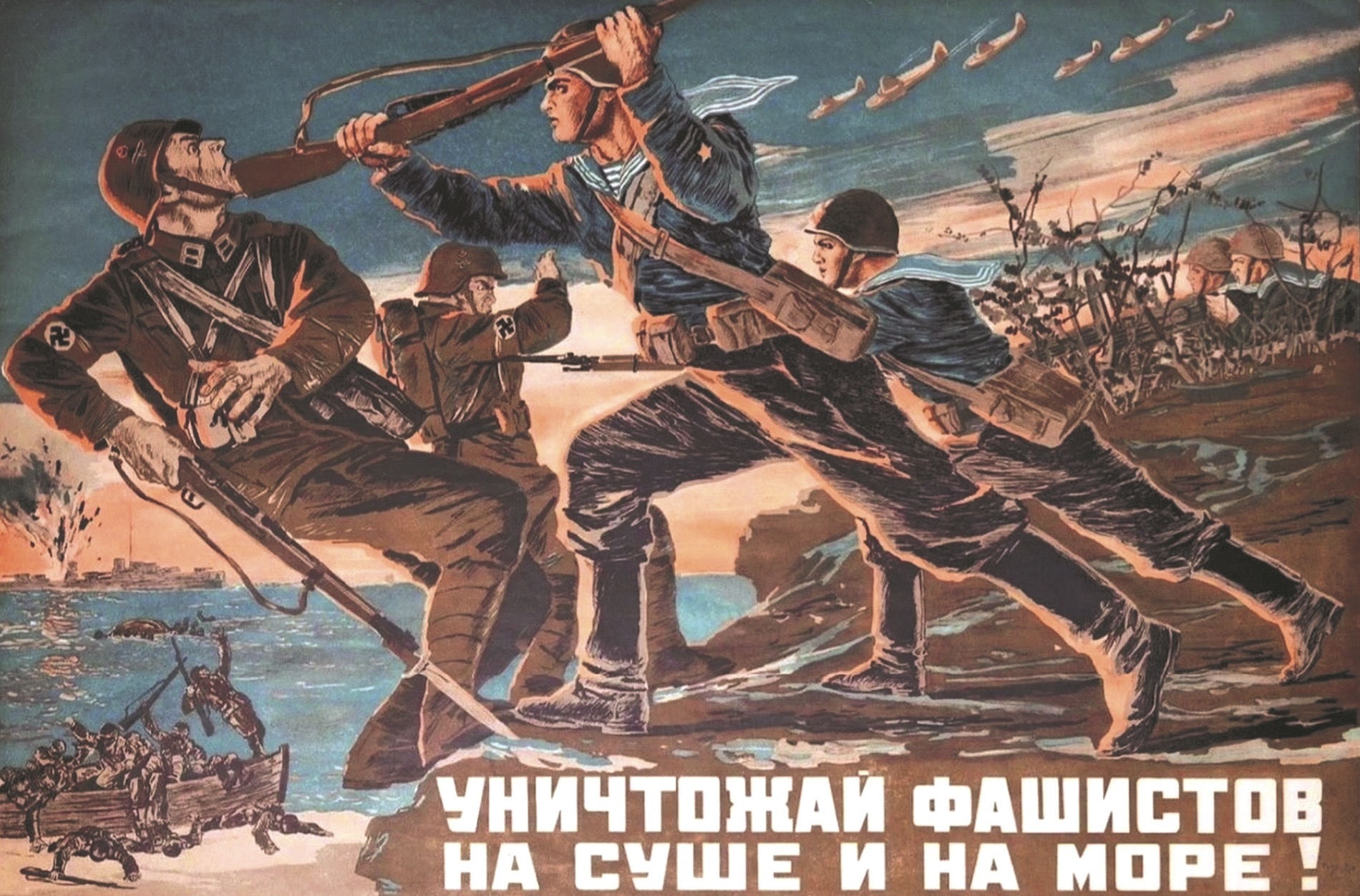 蘇聯(lián)文藝工作者創(chuàng)作的海報 文字大意:“消滅陸上和海上的法西斯分子!”