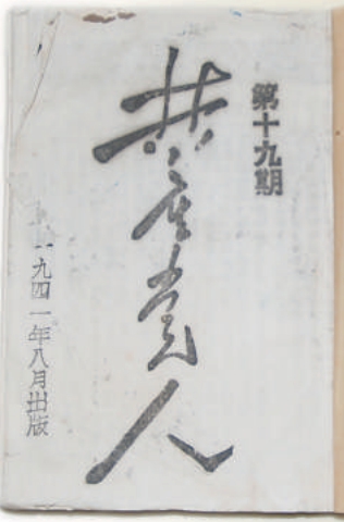 《共產(chǎn)黨人》是1939年10月在延安創(chuàng)辦的中共中央理論刊物,毛澤東為該刊題寫刊名“共產(chǎn)黨人”,并撰寫了發(fā)刊詞。雜志每月出版一期,總編輯為張聞天,編輯主任為李維漢,主旨為統(tǒng)一全黨思想、明確政治方向、鞏固黨的組織等?!豆伯a(chǎn)黨人》于1941年8月終刊,共出了19期。武光這本《共產(chǎn)黨人》就是第19期,扉頁(yè)上的“共產(chǎn)黨人”四個(gè)字極為顯著,左側(cè)印有“一九四一年八月出版”,目錄之后的首篇文章是《中央關(guān)于增強(qiáng)黨性的決定》。